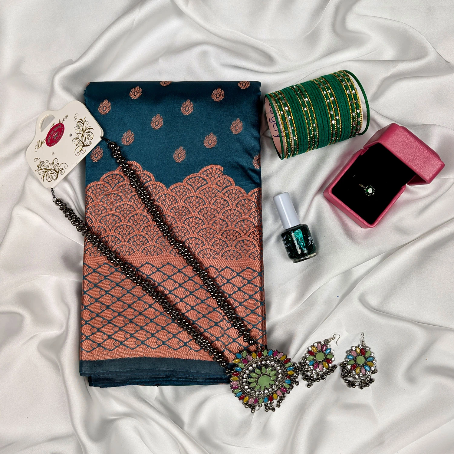 Celebrate special moments with a Premium Silk Katan Saree Combo Set,
