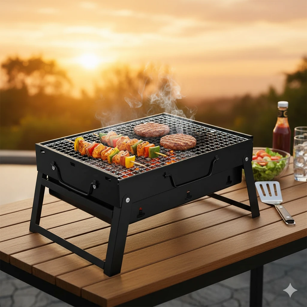 🍗 Portable Folding Charcoal BBQ Grill – Model TL-353Upgrade your outdoor cooking experience with the TL-353 Portable Folding Charcoal BBQ Grill — compact, lightweight, and built for adventure! Whether you’re camping, picnicking, or enjoying a backyard barbecue, this grill delivers powerful performance and unbeatable convenience. 🔧 Easy to Set UpSay goodbye to complicated installations! The TL-353 requires no screws or tools — simply unfold and start grilling. Its sturdy four-legged design ensures excellent stability, while the removable grill and ash catcher make cleaning effortless. 🔥 Large Cooking Area & Efficient BurningGrill more in less time with the chrome-plated cooking grate, offering ample space for your favorite foods. With 14 strategically placed air holes on the sides and bottom, you’ll enjoy superior airflow and faster charcoal burning for perfect grilling results every time. 🧱 Durable Stainless Steel ConstructionCrafted from high-quality, food-grade stainless steel, this grill is resistant to rust and high heat. Designed for long-term use, it’s easy to disassemble, clean, and reassemble in minutes. 🎒 Portable & Foldable DesignWeighing only 1.5 kg, the TL-353 is incredibly lightweight and easy to carry. When folded, it transforms into a slim, flat shape (40.5 x 27.5 x 20 cm) with a convenient handle — perfect for storing in your kitchen, backpack, or car trunk. 🌳 Perfect for Outdoor AdventuresIdeal for camping trips, picnics, road trips, and small outdoor parties, this grill is suitable for 4–6 people. Prepare a variety of dishes — from juicy burgers and steaks to fish, veggies, and sausages — wherever you go! ✅ Why Choose the TL-353 BBQ Grill?