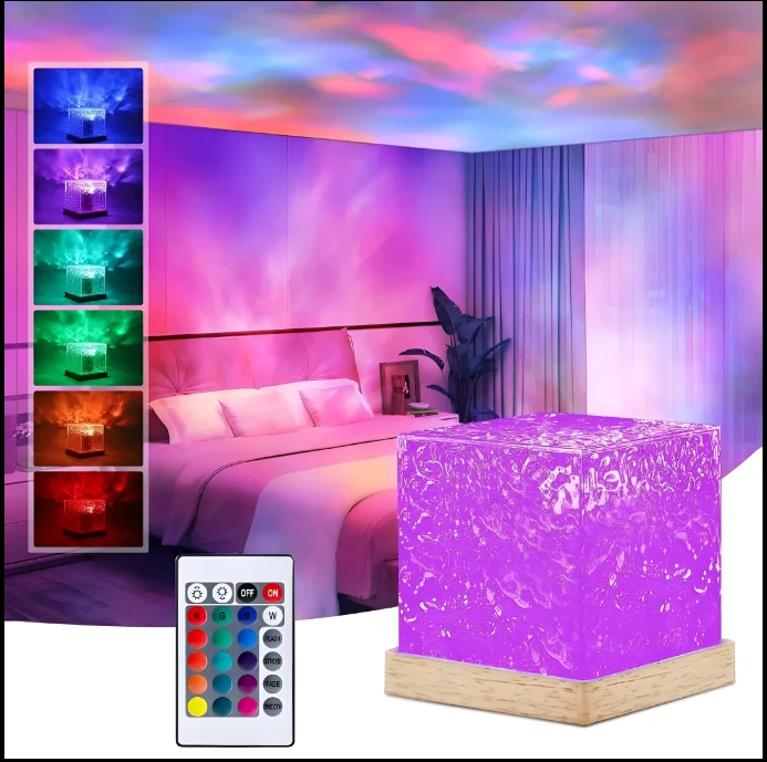 - Elegant Crystal Table Lamp Design: The square ice cube crystal shape is simple and modern, making it a stylish addition to any home decor. Even when the night light is off, it blends seamlessly with various home styles. When turned on, it becomes a gorgeous colourful water ripple crystal night light, adding a touch of sophistication to your bedside table or dresser.