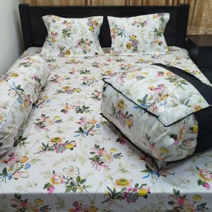Fabric: Made from original towel luxurious cotton for softness, durability, and a premium feel. Size: 84 inches × 90 inches This 5-piece combo set brings together comfort, elegance, and convenience, making it an ideal choice for a cozy and stylish bedroom. |