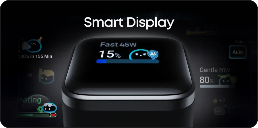- Shows real-time charging data such as wattage, charging status, and temperature