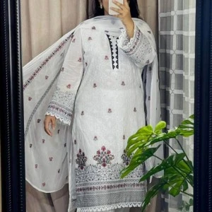 This premium cotton three-piece combines comfort, durability, and timeless elegance—making it a perfect addition to your ethnic wardrobe. |