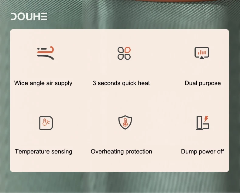 - Quick Heat-Up: PTC ceramic heating technology heats up in just 2 seconds